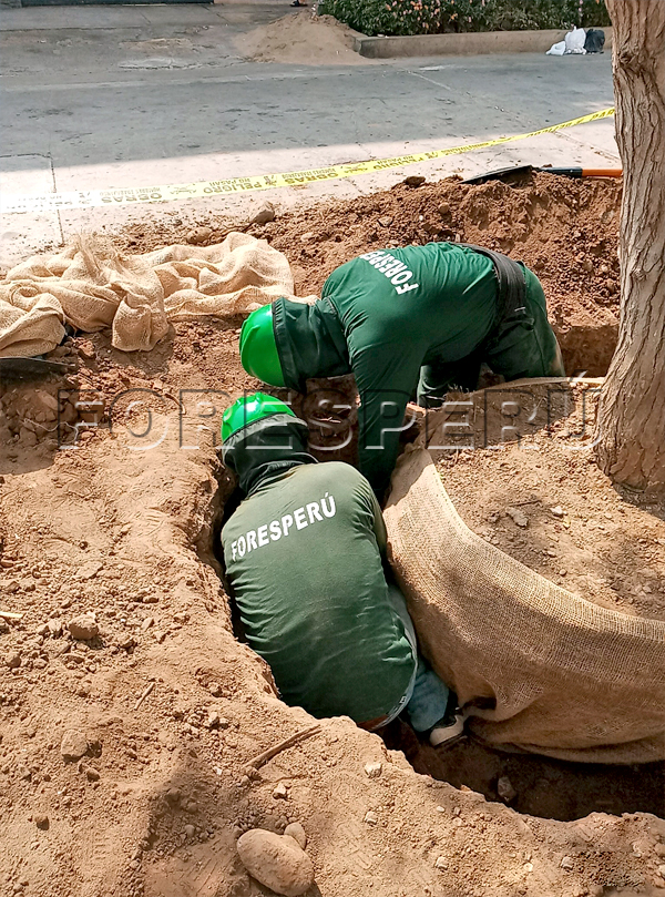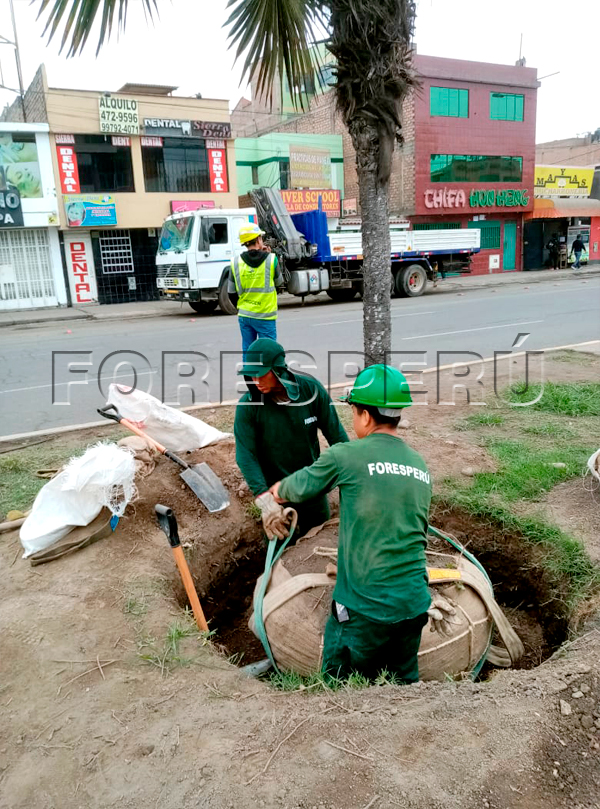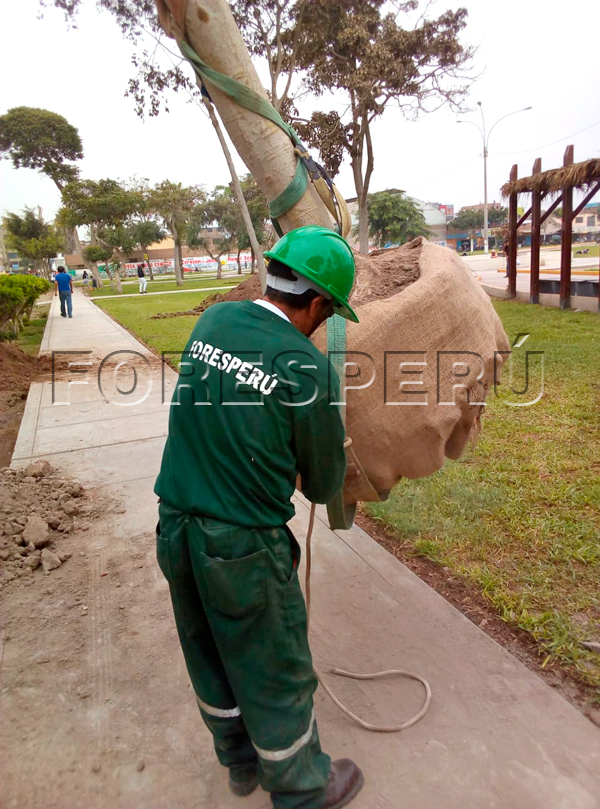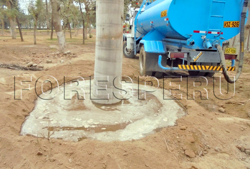 Fumigación y cubrimiento de raíces de palmeras washingtonia robusta