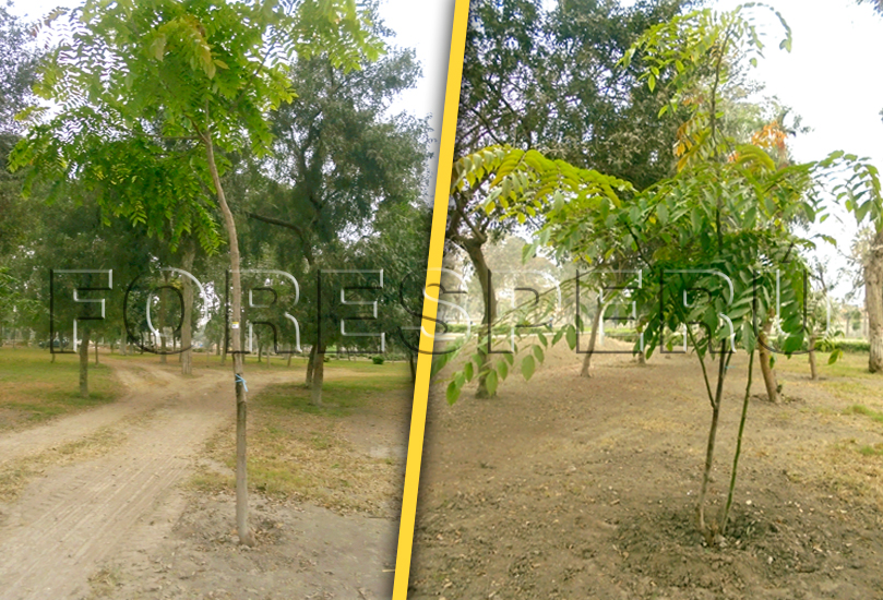Arboles de Amelias y papelillos trasplantados listos para su primer riego.