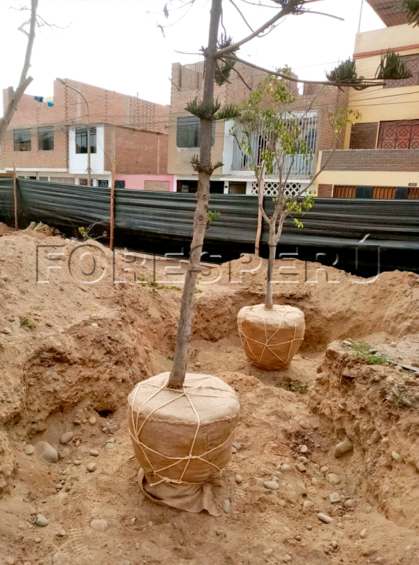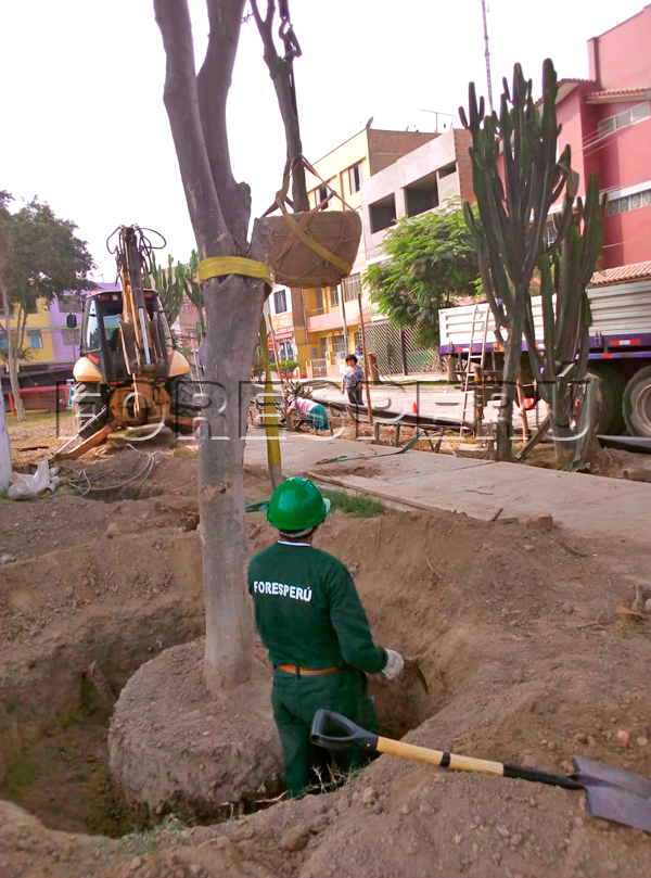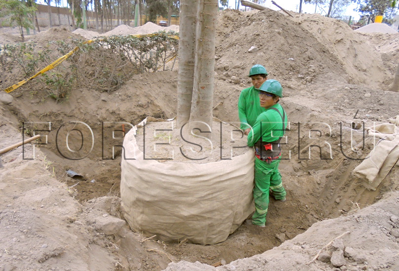 Extracción, traslado y trasplante de una camada de molles costeños.