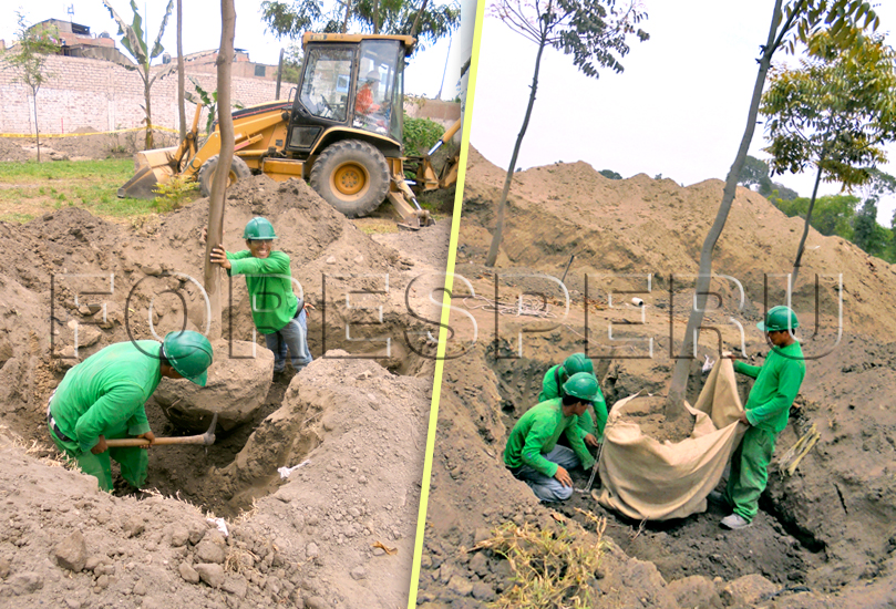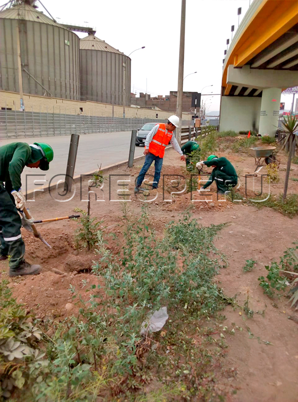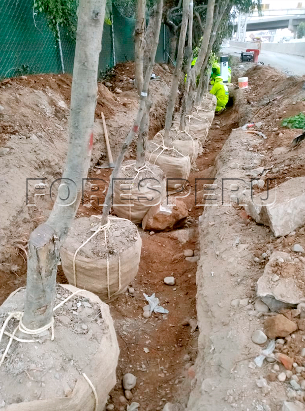 Extracción, traslado y trasplante de una camada de molles costeños.