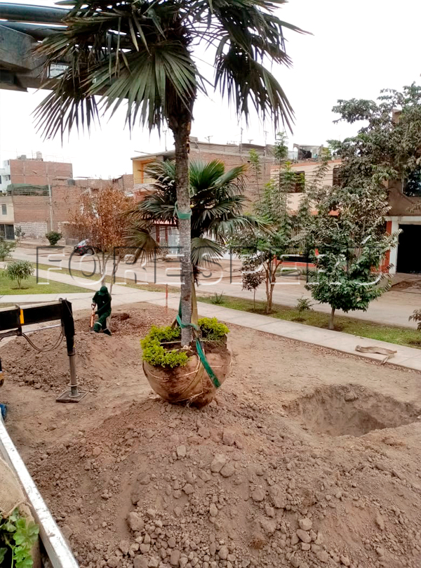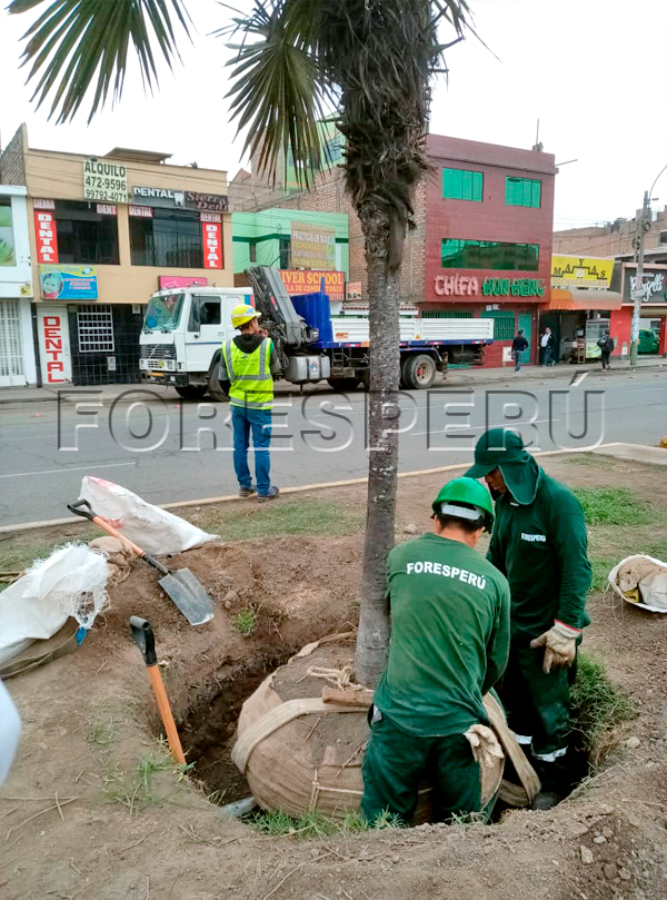Fumigación y cubrimiento de raíces de palmeras washingtonia robusta