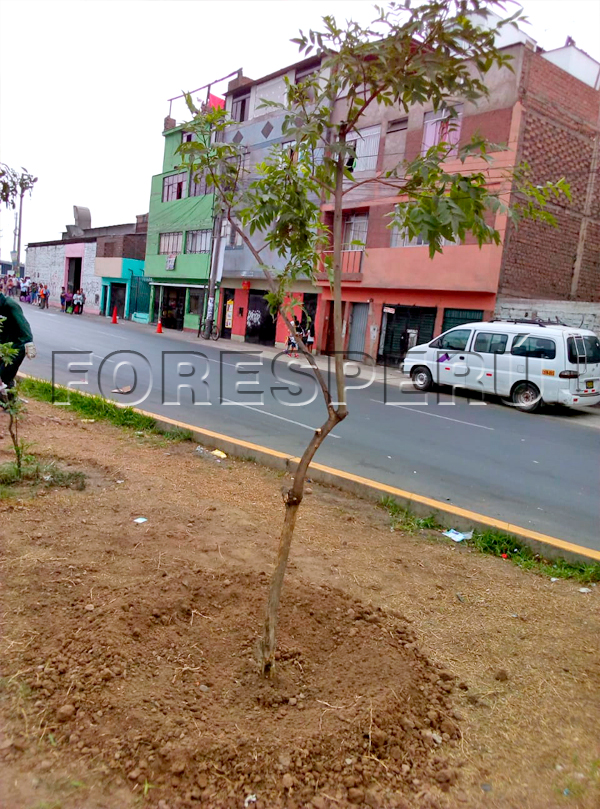 Arboles de Amelias y papelillos trasplantados listos para su primer riego.